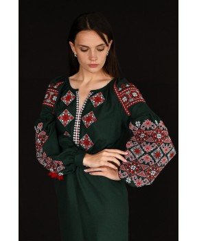 6 995,00 ₴Довга лляна сукня із клинами вишита гладдю.